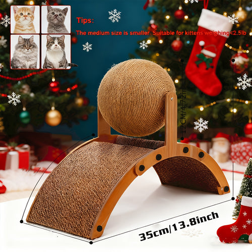 Vertical Cat Scratching Post & Ball Toy - Sisal Scratching Column with Tumbler Base -