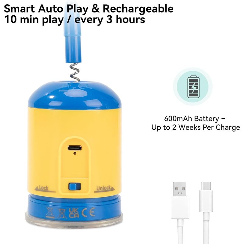 Rechargeable & Smart Auto Play Mode – Powered by a 600mAh rechargeable battery. lasting up to 2 weeks per charge. The toy runs for 10 minutes every 3 hours. automatically inviting your cat to play and helping build a healthy daily exercise routine without over-stimulation.